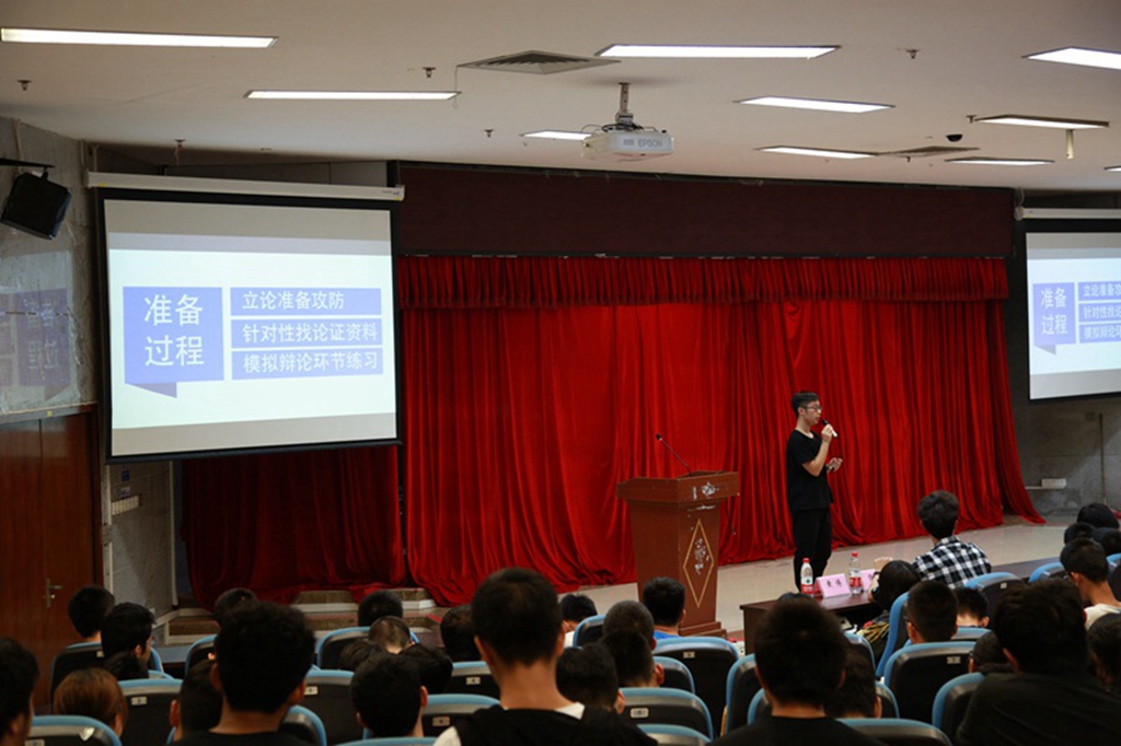 会议下半场黄博师兄就“如何准备和打好一场辩论赛”进行发言,简明扼要地介绍了材料学院辩论队。场下同学们听得也是跃跃欲试。