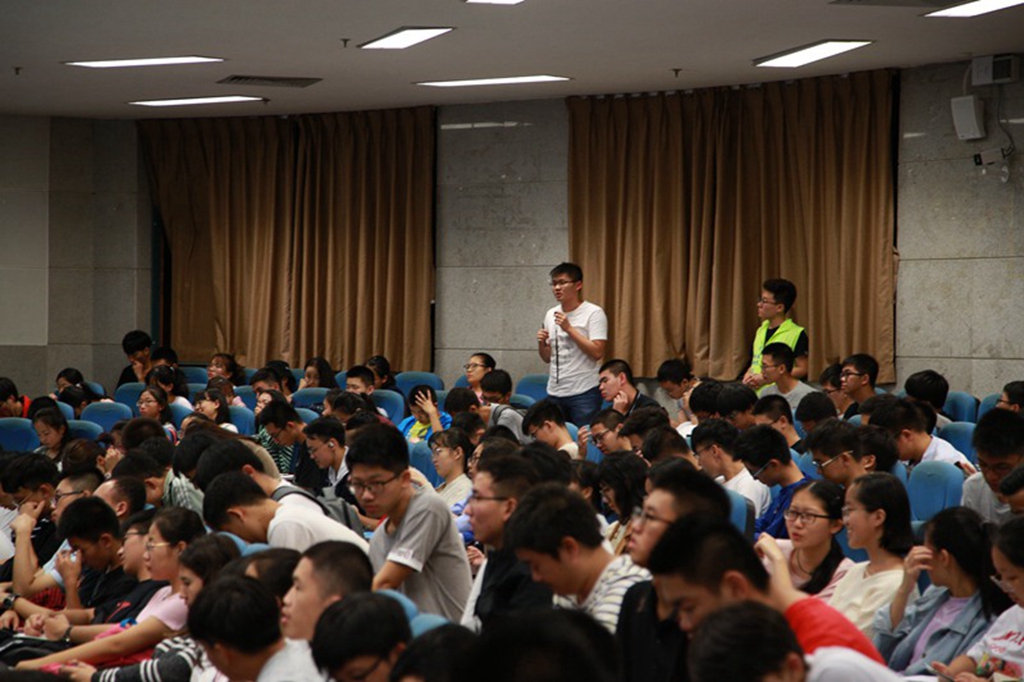 宣讲会之前,麦其鹏老师首先以其幽默风趣的口吻,结合他本人丰富的阅历,为18级新生分享了一些个人经验,告诫同学们在大学的学习生活中依旧需要将学习放在首位,勉励同学们为更好的将来而努力奋斗。