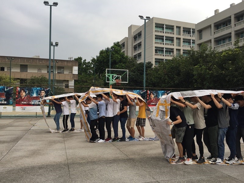 素拓活动开始前,参加活动的成员通过抽签决定分组。确定团队成员后,各队成员在仅有的几分钟内完成了从自我介绍到相互认识,选出队长,想好队名。经准备后各队进行团队展示,即报出自己队伍的队长、队名和加油方式。短时间的认识,队员们褪去了彼此间的陌生感,队伍里充满着欢乐的气氛。大家的积极参与和踊跃表现让活动现场逐渐热闹起来。为了考验队员间的熟悉程度,开始了第一个游戏:滚雪球,每个人按顺序说出自己队员的名字。游戏开始后,气氛开始迅速升温,大家快速地报出名字,其中有个队给展示出倒序报出名字这一项新技能,表现非常优秀。各队完成第一项游戏后迫不及待想进入第二项游戏:怪兽的腿,此游戏最能考验成员间的团结协作能力。各组队员热火朝天的按照主持人的要求在指压板上互相协作摆出各样造型。现场气氛很是热烈,加油呐喊声,愉快的笑声齐聚一堂,展现了研究生属于年轻人的青春朝气和顽强拼搏的风采。接下来的第三项游戏:车轮滚滚,也是本次素拓活动的高潮部分。这个游戏不仅考验了合作能力,还有队员的动手操作能力。每组队伍自己动手争分夺秒粘贴报纸制作好本队游戏道具,激情似火地进行速度的比拼。在秘书部工作人员的指挥下后续还有条不紊地开展了“气球大作战”和“七人九足”两个游戏,其中“气球打作战”游戏的趣味让每队享受到更大的欢乐,在“七人九足”中每队以实际行动诠释了我们这一次素质拓展的主题:青春·风采·团结·共赢。