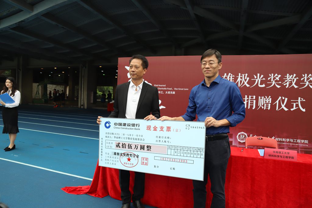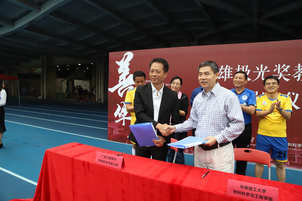 金秋时节,秋风飒爽。11月10日早上10点,华南理工大学材料科学与工程学院三雄极光奖教奖学金捐赠仪式暨材料科学与工程学院足球俱乐部成立仪式拉开了序幕。出席本次仪式的有三雄极光股份有限公司副总裁陈松辉校友,材料学院党委张勤远书记、彭俊彪院长、吴妙娴常务副书记、彭树立副书记和学生代表。