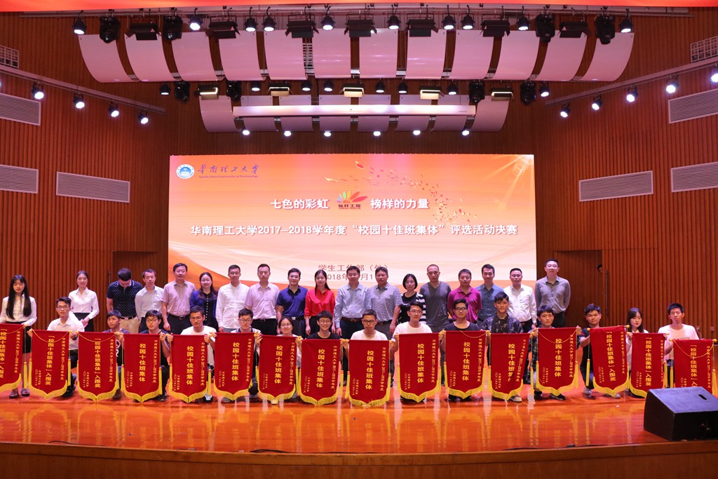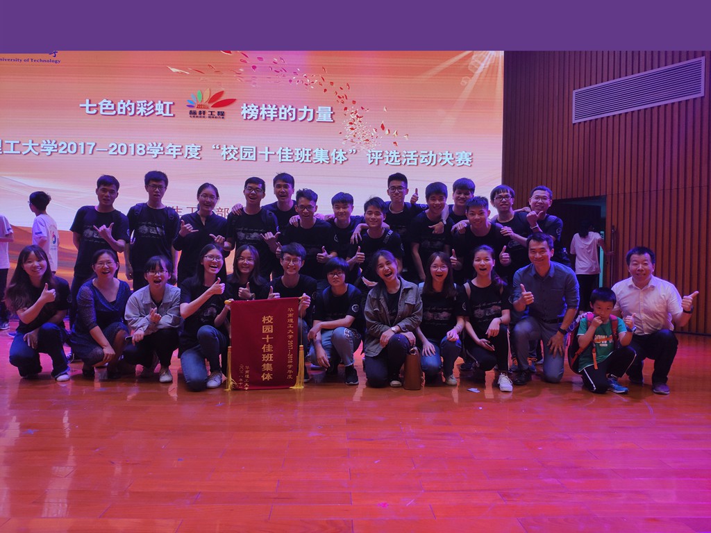 11月11日下午,华南理工大学“七色的彩虹,榜样的力量”——2017-2018学年度“校园十佳班集体”评选决赛在大学城校区音乐厅举行,我院2015级无机非金属材料科学与工程班凭借过硬的综合实力和独出心裁的舞台展示获得了2017-2018学年度“校园十佳班集体”荣誉称号。