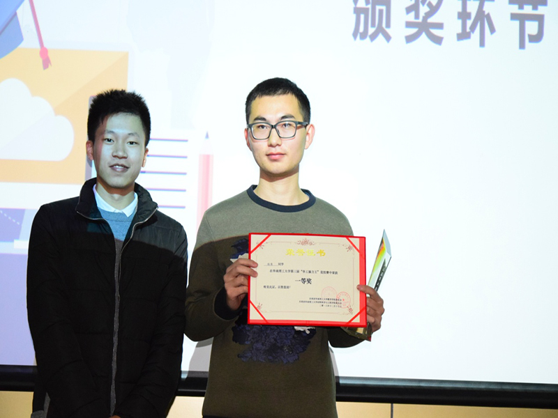 冠亚军争夺战是整个比赛的高潮,徐涛同学和李圣淋同学在第四环节以领先优势进入冠亚军争夺,两名选手在必答环节中不仅要准确进行自我评估,选择适合自己难度的题,还要在抢答环节中先声夺人,拔得头筹。最终在几轮PK结束后,徐涛同学以总分领先45分的大比分优势胜出,获得第三届“华工脑力王”脑力竞技赛的冠军。