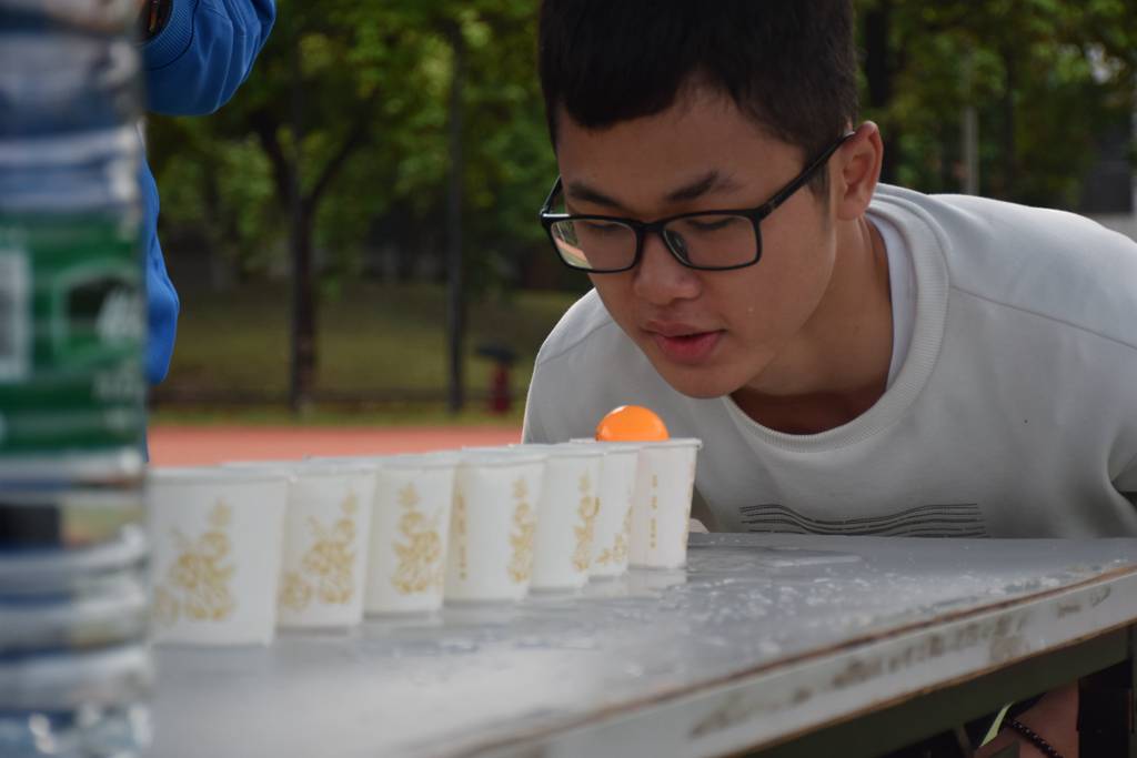 本次活动共设置六个摊位,除了美甲摊位以及总摊位,还包含吹乒乓球、“胖猪猪”挑战、DIY折纸花、你比我猜四个游戏摊位。同学们通过完成游戏领取游戏章,根据集章数量可以参加美甲环节或换取一定数量的套圈参与总摊位的套圈赢奖品环节。活动开始,便有预先报名的同学前来挑战。而伴随着活动的进行,其他同学们也渐渐加入游戏。绿茵场上充满同学们嬉闹的欢声笑语。