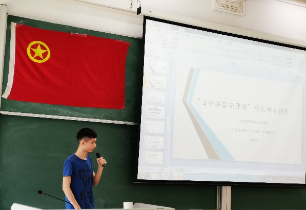 首先,刘韫聪学长介绍了我校科研体系与科研项目,随后他为大家推荐了材院几位带头做项目的老师。到场的同学都专注地听着这位优秀学长的讲解。