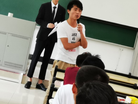 在刘韫聪学长讲解完毕后,唐浩洲学长与陈鹏学长分别对同学们最感兴趣的百步梯项目和SRP项目进行了详细的解说。他们生动有趣的语言引得在场的同学们时而大笑,时而鼓掌。