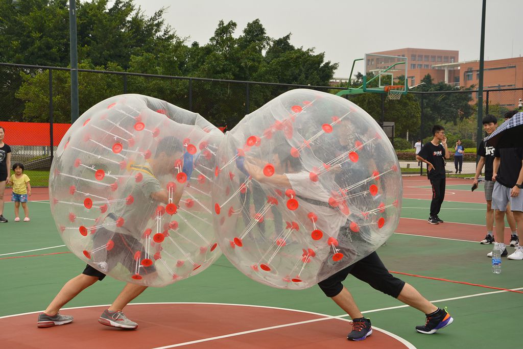 先把目光投到16生医与18高甲摸石头过河比赛。选手们灵活地调动身体每一个部位,以最认真的态度和最昂扬的姿态投入到比赛中。欢乐碰碰球环节更是惊心动魄,你来我往的对抗之间,尽是选手们英姿的展现。