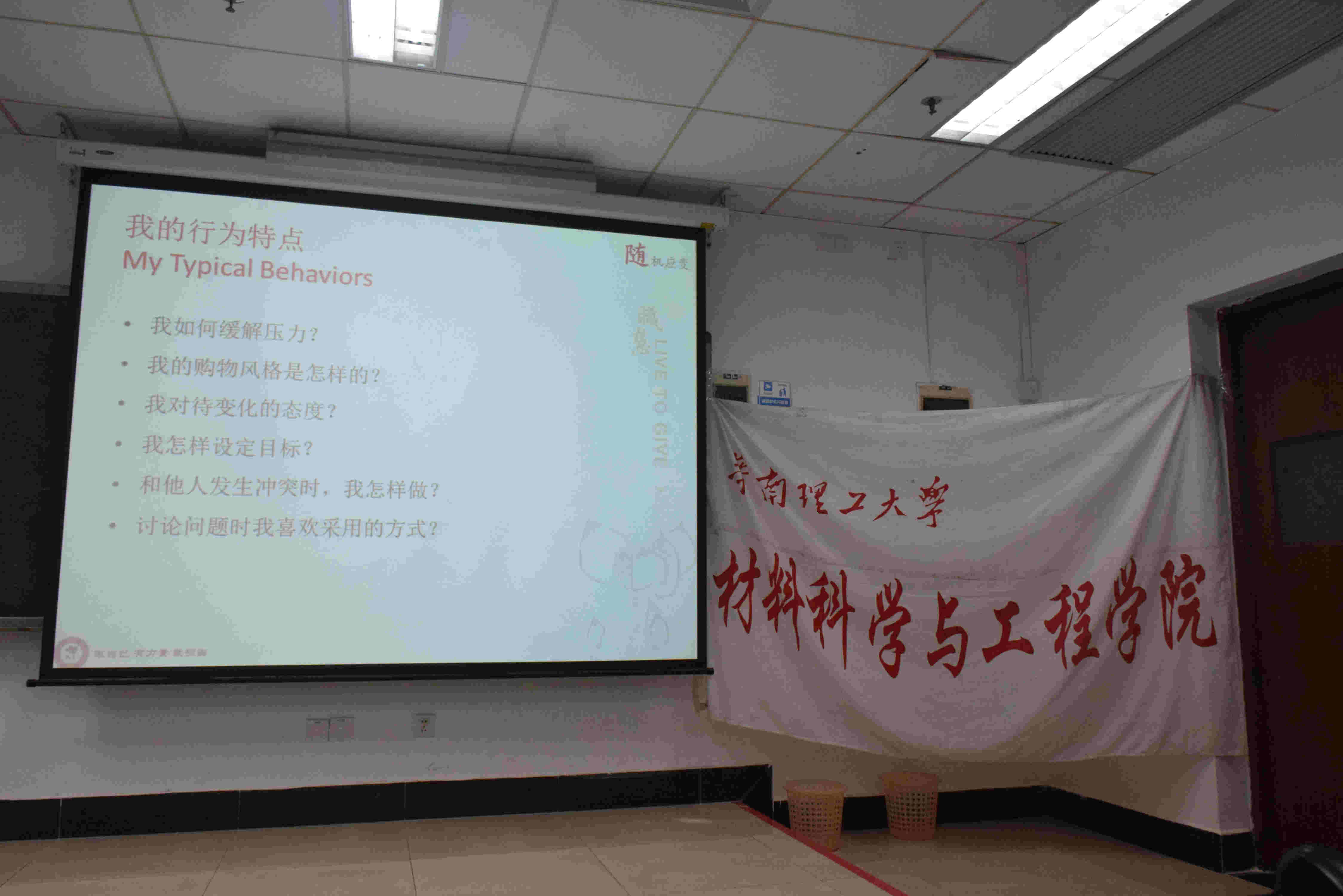 2019年5月16日晚上七时,由材料科学与工程学院举办的“职业启航系列讲座”在华南理工大学大学城校区A4-202教室拉开帷幕。本次讲座旨在向同学们分享如何在职场上找到自己的社交风格并与不同风格的人和谐相处。