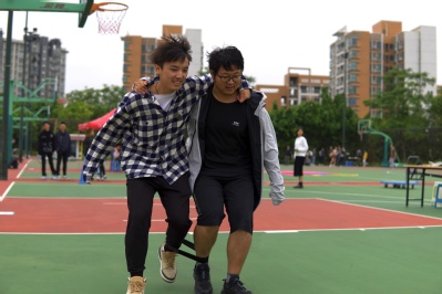 随着语音播报「白昼」到来,各式游戏拉开序幕。在“抢水瓶”时,成员们根据裁判的口令做出相应动作,直至抢到水瓶,游戏的纯粹竞技性激发了各小组成员的斗志,全场气氛被瞬间点燃。第二阶段,剩余成员拉住一名参赛成员慢慢放下,使他夺得远处的水瓶,所有人都感受到了团队的力量。在“转圈”时,成员们手拉手,在快速钻过自己组成的圈的同时,成员们之间的距离也在迅速缩短。而在“套圈”时,成员们都仿佛置身于童年的游乐场,使尽浑身解数,在享受质朴的乐趣的同时,也感受到了稳重策略的重要性。在进行“两人三足”时,初次磨合的成员们失误百出,而在渐渐地熟悉中,整齐的步伐也越来越多地涌现。