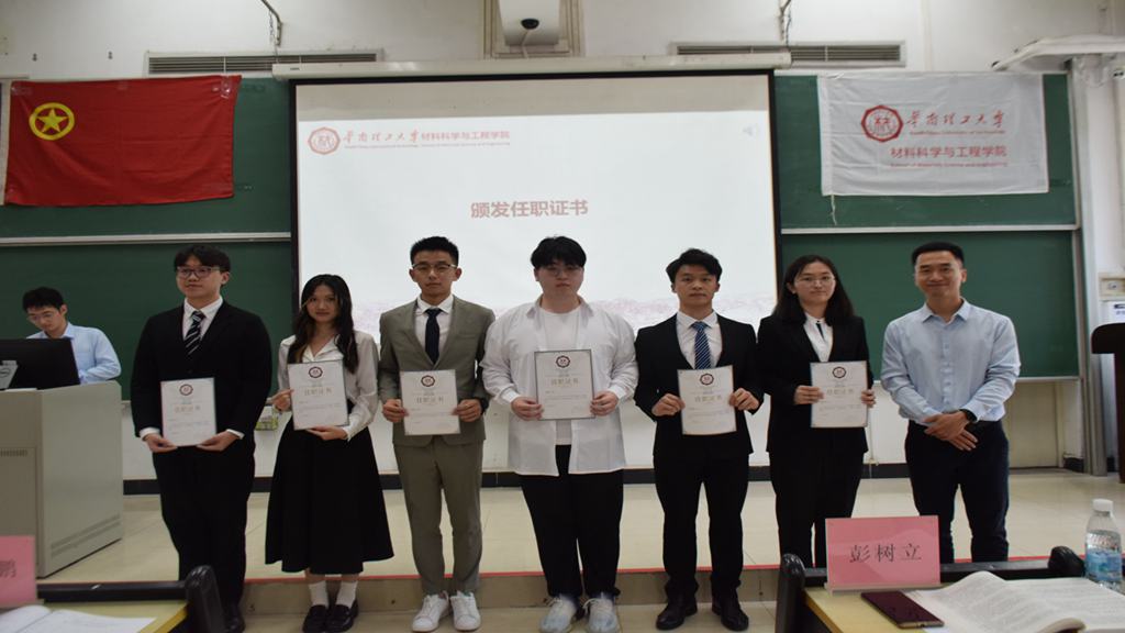大会还审议通过了《华南理工大学材料与工程学院学生会章程》修订案(草案)。为表彰工作表现突出的学生会部门,彭树立老师向秘书部颁发了“优秀部门”锦旗;为感谢辛勤工作的部门成员,彭树立老师为他们颁发任职证书。最后,彭树立老师致辞。他勉励学生干部牢记初心使命,学好专业知识的同时做好同学们的服务工作,提升自身综合素质,引导广大同学们共同成长成才。