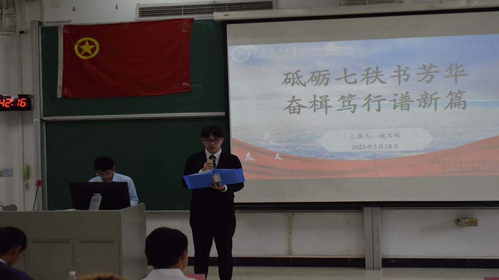 现场奏唱国歌后,首先由校学生会主席团成员李修文视频致辞。他对材料学院学生会在过去一年的工作成果表示肯定,并对新一年的工作表示期望。紧接着,材料学院学生会主席团成员赵天柱作学院第十五届学生会工作报告,对学院学生会过去一年的工作作总结回顾并提出希望。