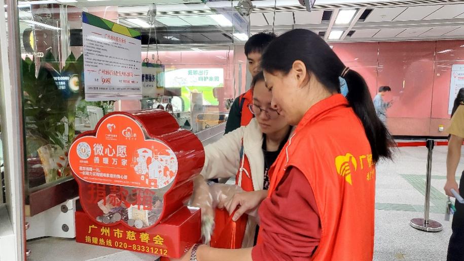 广州市慈善会联合广州地铁在1号线、2号线、3号线、APM线等9条线路沿线票亭设置慈善募捐箱。这些募捐箱不仅见证了每天来来往往的人潮人海,也记录了广大市民群众流动的爱心,将地铁网络变成爱心网络。材料学院学生接过爱心传递的接力棒,收集地铁4号线和五号线沿线的募捐箱善款并更新箱体项目贴纸。