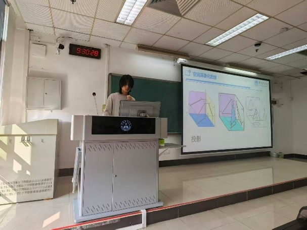 分享由刘昱妮学姐率先展开。她从工程制图的起源与应用讲起,回答了“为什么要学习工程制图”这一基础问题,并结合自身经验强调“反复练习”与“形成空间想象能力”的重要性。针对部分同学在立体图形想象上的困难,她尤其推荐借助SolidWorks等制图软件,帮助建立“平面—立体—平面”的转化思维;在备考方面,建议以历年真题为抓手,掌握常考规律、提高复习效率。