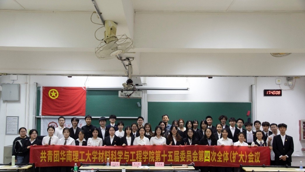 2025年12月6日16时30分,共青团华南理工大学材料科学与工程学院第十五届委员会第四次全体(扩大)会议于五山校区34号楼503教室召开。本次大会团员代表实到人数大于应到人数的三分之二,会议正常召开。材料科学与工程学院团委书记麦其鹏老师,团委常委李晓海老师、2024级本科辅导员钱慧荣老师出席本次大会。