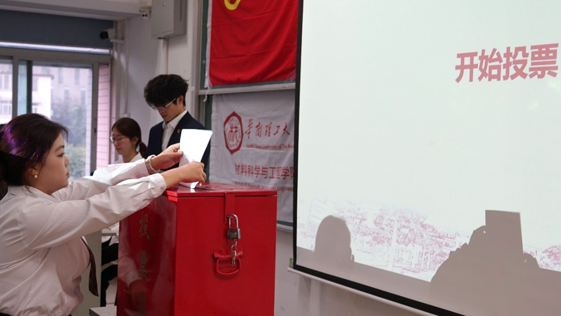 随后,全体与会代表听取并通过了选举办法、大会监票人及计票人资格审查报告和建议名单,听取并审议通过候选人资格审查报告。在主持人介绍完各候选人后,与会代表通过投票的方式,选举出高梦雪等16位共青团华南理工大学材料科学与工程学院第十五届增补委员。投票全程由监票人监督,确保了选举的公正、公开。