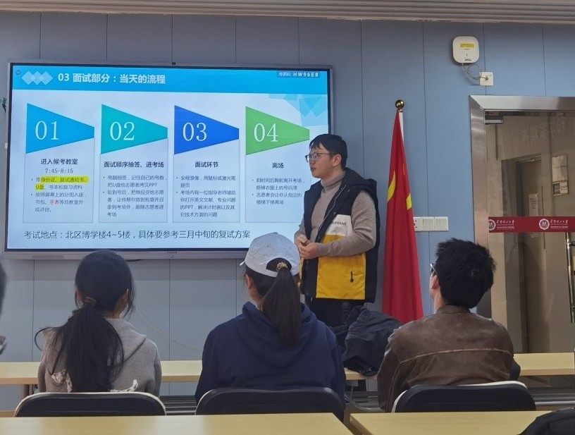 此次分享会是学院学风建设的重要举措,不仅为学子提供了可操作的复试备考策略,更扫除了信息盲区、缓解了备考焦虑,为学子注入复试信心。学院将持续聚焦学子成长需求,以多样活动搭建交流平台,助力材子在求学路上步履铿锵,圆梦前行。(图/林玟晴 文/林玟晴 初审/高梦雪 复审/李晓海 黄韬 终审/赵小芳)