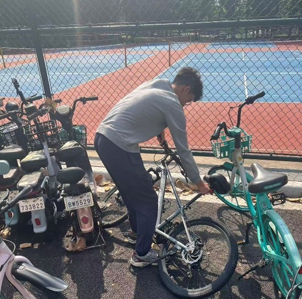 志愿者整理摆放自行车