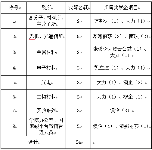 现根据各“奖教金”协议的评选要求,分配各系所获奖教职工名额如下: