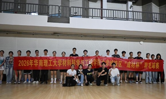 2026年3月28日,华南理工大学材料科学与工程学院“成材杯”羽毛球赛在大学城校区体育馆顺利举办。本次活动旨在丰富学生课余生活,激发体育锻炼热情,展现材料学院学子积极向上的精神风貌,吸引了众多羽毛球爱好者参赛。