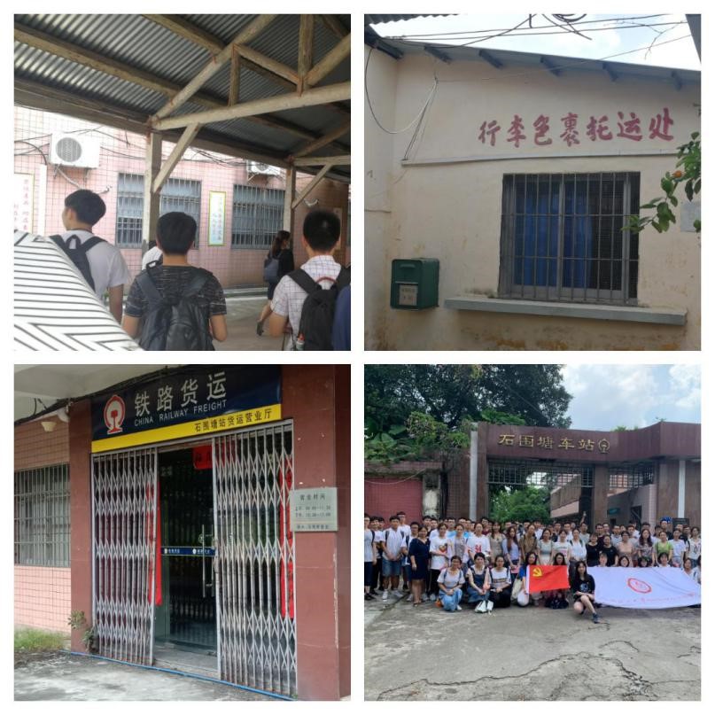 首先,学生党员参观了广州现存最古老的火车站——石围塘车站。车站于1903年9月份通车使用,抗战时期经历了动员工人每月捐一天工资支援省港大罢工、广三铁路工人与广州市郊一区农民协会的农民自卫队组建工人赤卫队连队参加了起义,总工会成立后,广三铁路总工会领导全铁路工人运动并出版了《广三工人》周刊。车站内保存有候车雨棚、行李包裹托运站台等。石围塘车站以前用途主要是以客运为主并兼营货物运输。车站于2004年进行管理体制改革,已由独立的车站改为车间,目前石围塘车站还承担着运营任务。充满沧桑感的车站,在复古的房屋石砖窗户台阶的装饰下更显历史感,让学生党员真切地感受到了石围塘车站的宁静,在当下快速发展的步伐中,寻觅过去的真与美,时刻不忘初心,砥砺前行。