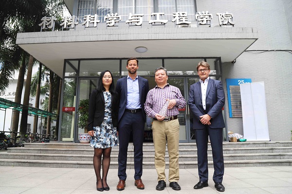 近日,瑞典百欧林 (Biolin Scientific) 科技有限公司总裁(CEO)Mattias Bengtsson, 百欧林董事会主席Peter Simonsbacka和百欧林亚洲区域总经理Vanilla Chen (陈俊燕)专程来到华南理工大学,为材料科学与工程学院张广照教授颁发QCM-D技术“杰出贡献奖 (Outstanding Contribution Award)”,以表彰其为QCM-D的发展和应用所做出的贡献。