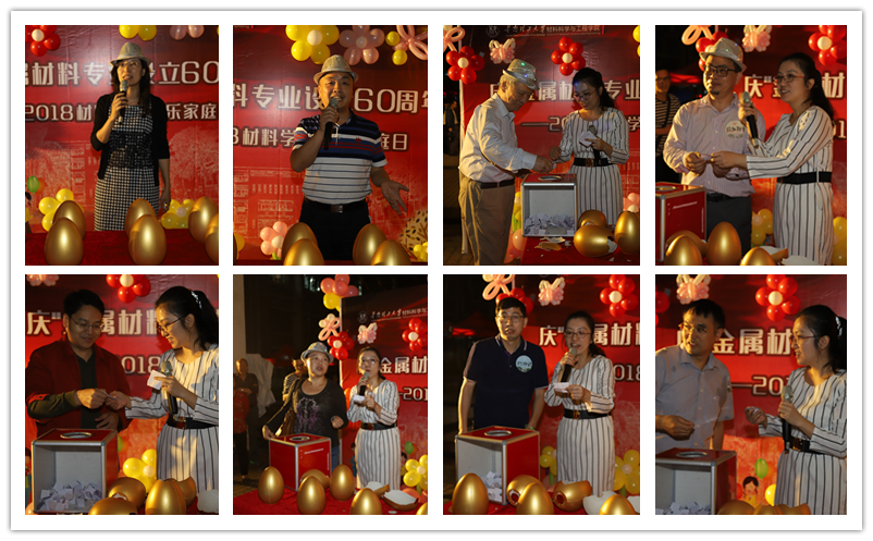 伴随着欢快的音乐,原华南理工大学校长、金属系退休老教授刘正义,以及学院党委常务副书记吴妙娴、副院长欧阳柳章教授、副院长殷素红教授、工会主席刘平安教授、金属系主任刘仲武教授开始为到场的教职工抽奖,中奖人获得砸金蛋、赢取大奖的机会。中奖教师兴高采烈,喜气洋洋,有的还带着孩子,上阵“砸蛋”,最后有10位老师喜提大奖,现场气氛十分热烈。