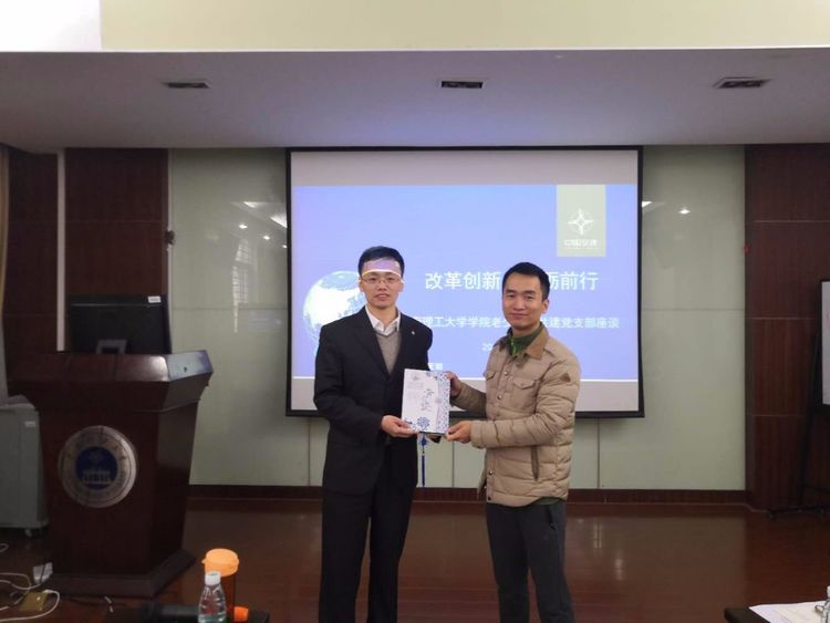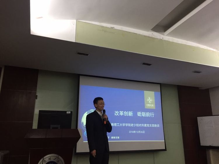 12月26日,材料学院无机系退休教工党支部与结对共建的无机系2016级硕士三班党支部以“在改革开放道路上接力奋斗”为主题共同过党组织生活。杰出校友、四航研究院建材所所长、中国交建建筑材料重点实验室主任熊建波博士受邀与师生一起座谈,学院党委副书记彭树立出席座谈会。