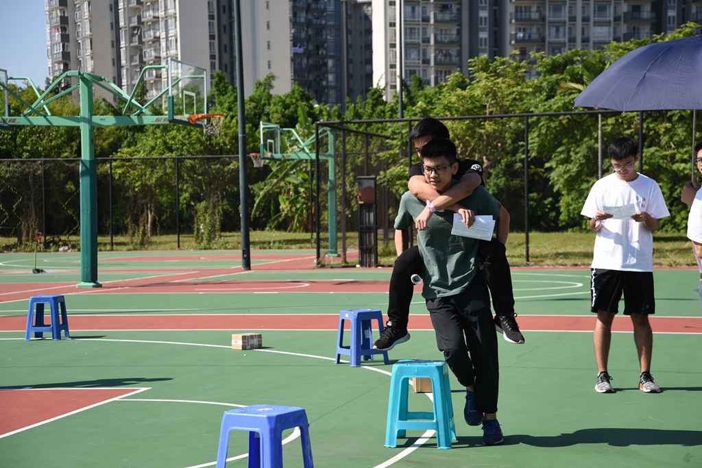 在紧张刺激的游戏环节中,“你画我猜”和“障碍背跑”要求队员们有默契,“转圈扎气球”最为有趣,先模仿“大象摸鼻”转十圈,再去扎烂所有气球,极为考验身体的平衡能力。接着进行的“奇迹再现”“公主与骑士”等精彩游戏活动更是让同学们惊叫连连,现场热闹非凡。同学们在玩游戏的过程中不仅得到了放松,也收获了友谊。