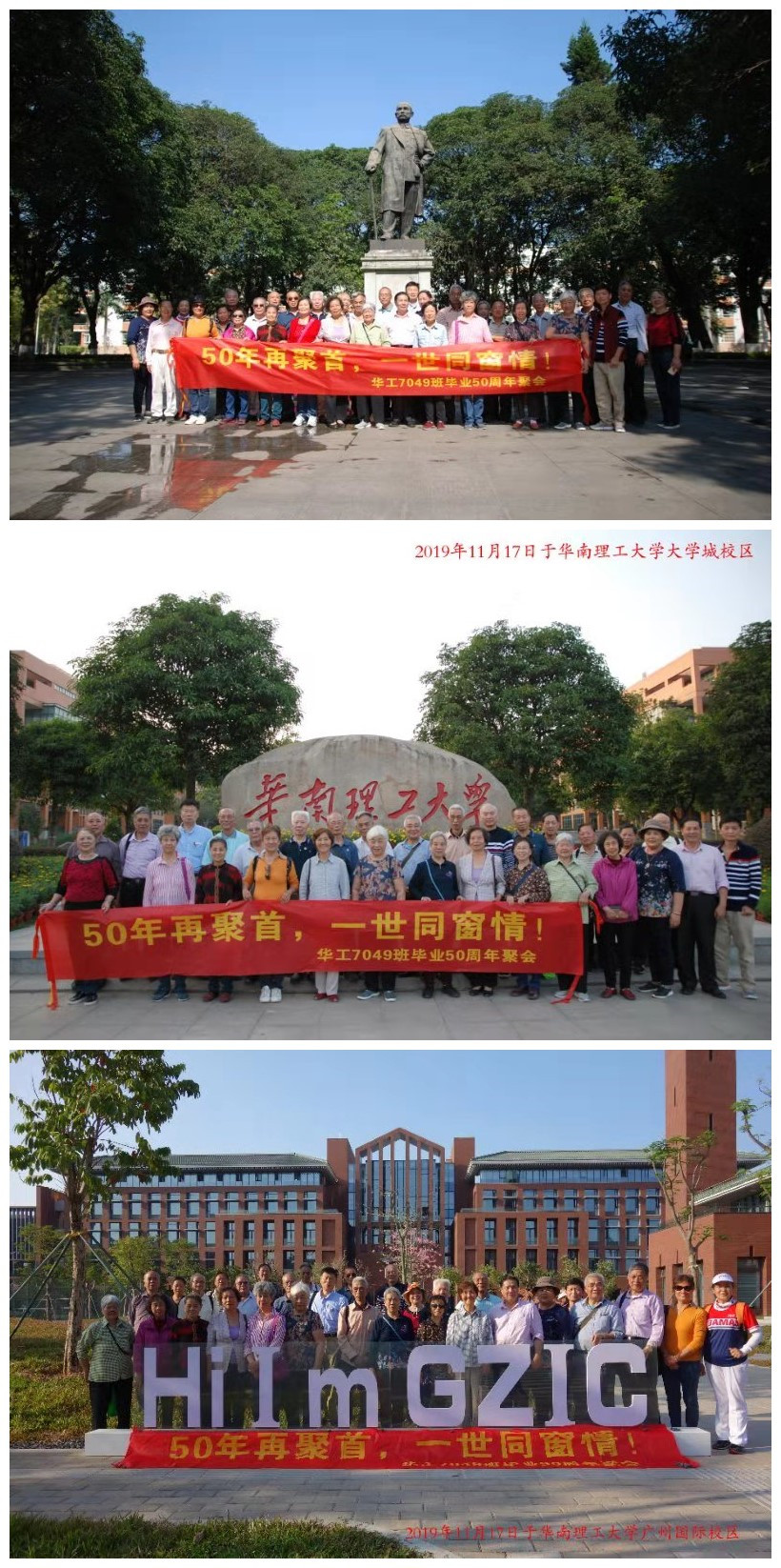 座谈会结束后,校友们还参观了大学城校区和广州国际校区,手持“50周年再聚首,一世同窗情”的横幅合影留作纪念。(图、文/何泽民)