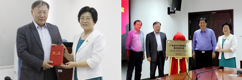 汇报后,刘琪瑾副书记、李永舫院士、唐本忠院士、林艺文处长共同为“广东省分子聚集发光重点实验室”揭牌。
