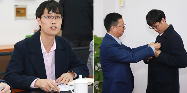 高松对褚衍辉同志加入中国共产党表示祝贺。他指出,褚衍辉同志积极上进,不论是政治上,还是学术上、科研上、学习上,在年轻人中比较突出。褚老师参加的学校组织青年骨干教师到井冈山开展现场红色教育教学,这种形式对年轻教师了解党的历史、坚定“四个自信”非常有帮助。