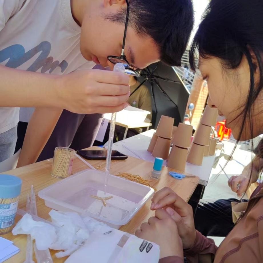 上午十时,活动正式开始,各摊位前迅速聚集了许多同学,一场融合科学与趣味的探索之旅就此展开。