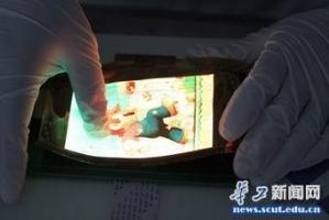 On 27th July, the first flexible color AMOLED display was developed under the joint efforts of State Key Laboratory of Luminescent Materials and Devices, South China University of Technology (SCUT) and Guangzhou New Vision Opto-Electronic Technology Co., Ltd. The flexible AMOLED display adopted the Ln-IZO metallic oxide TFT Technology which was independently developed by SCUT. With a size of 4.8 inch and a thickness of 100 micrometers, it weighs less than 1 gram and has achieved color video and image display. This marks the first flexible color AMOLED display in China.