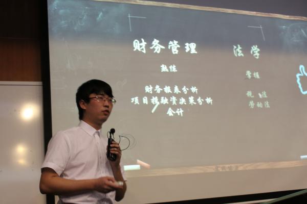 财务管理岗则由吴有东、范宗伟与何乐仪三位选手进行展示。吴有东同学的ppt全程以第三人称“他”介绍自己,十分有趣,而何乐仪信手拈来的英文单词,傲人的英语考试成绩也让我们惊喜。