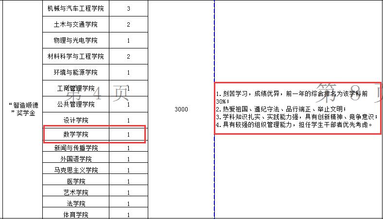 数学学院今年获得1个“智造顺德”奖学金推荐名额,金额及参评要求见下截图或下载附件1: