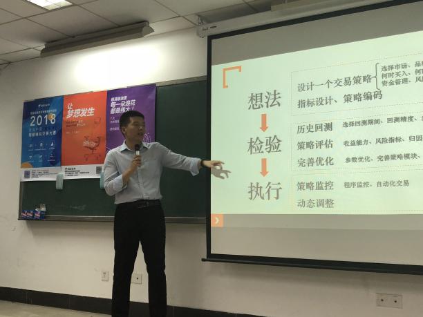 11月12日19:00,“数研讲堂” 第006期量化交易专题讲座在大学城校区A4-205开讲,来自国信证券的徐睿讲师向华园学子生动形象地介绍了量化交易的入门知识。讲座主题实用、内容充实、干货满满,让现场学子得到了一次知识的盛宴!