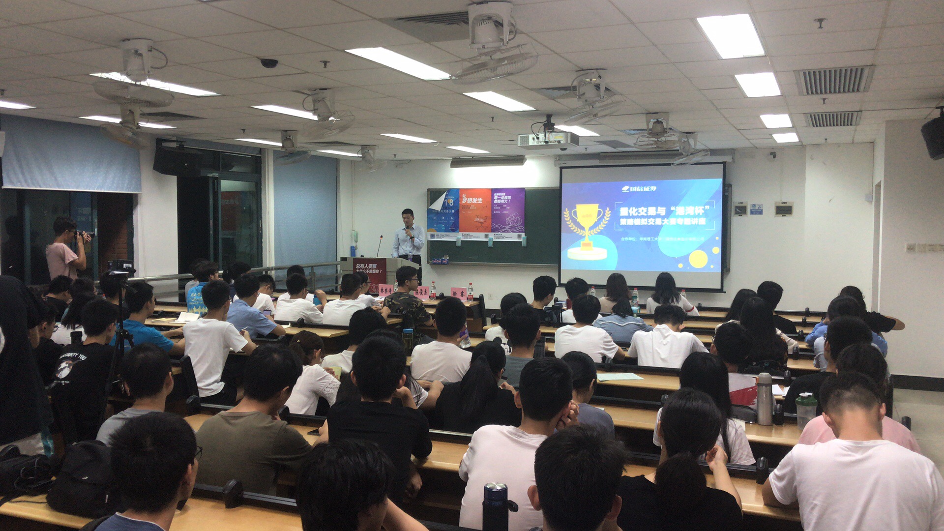 本期“数研讲堂”讲座由香港科技大学博士、现任国信证券总部技术交易团队投研主管徐睿老师主讲。徐睿老师在量化交易平台研发、机器学习算法及其在量化投资中的应用等方面有深入的研究以及丰富的实践经验。为了让同学们能更好地学习到量化投资相关知识,徐睿讲师结合自身在量化投资领域深刻的感知体验与丰富的工作经验,以股票投资为例引入量化交易的概念,层层深入,依次介绍了量化交易在国内外背景及行情、量化交易内容及量化交易策略的入门知识。何睿讲师还详细介绍了“港湾杯”策略模拟交易大赛内容,鼓励同学们亲身参与到量化交易当中。整场讲座过程中,同学们积极与老师互动,向老师提出疑问,徐睿讲师耐心解答同学们的疑惑,现场学术氛围浓厚。活动结束后,同学们对讲座内容仍意犹未尽,积极与徐睿讲师交流学习,深入探讨,迸溅学术的火花。