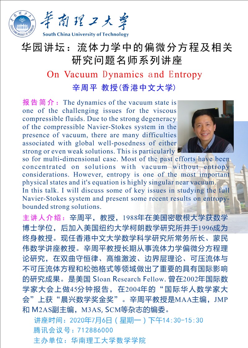 华园讲坛:流体力学中的偏微分方程及相关研究问题名师系列讲座(辛周平 教授)