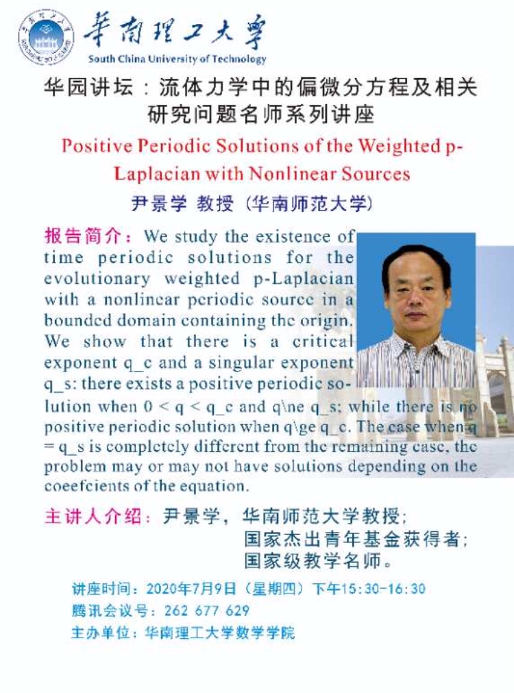 华园讲坛:流体力学中的偏微分方程及相关研究问题名师系列讲座(尹景学 教授)