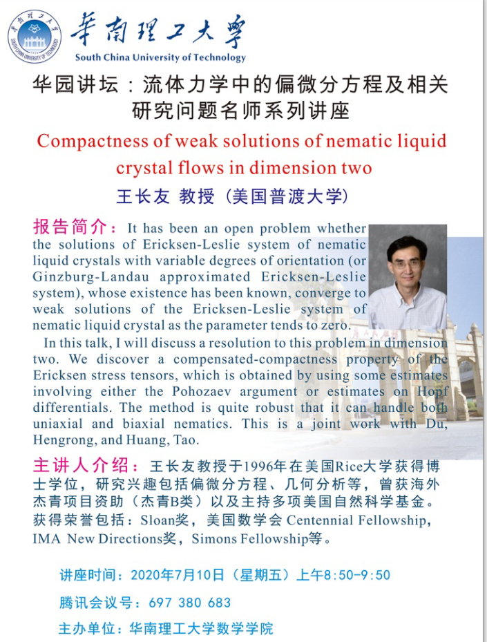 华园讲坛:流体力学中的偏微分方程及相关研究问题名师系列讲座(王长友 教授)