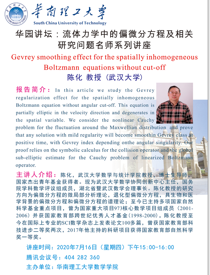 华园讲坛:流体力学中的偏微分方程及相关研究问题名师系列讲座(陈化 教授)