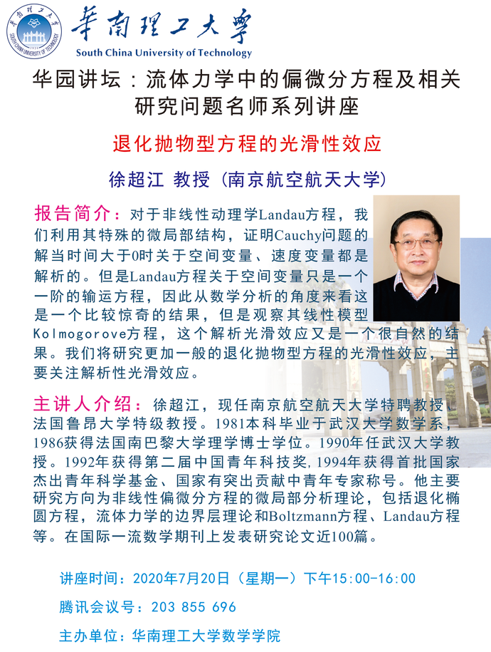 华园讲坛:流体力学中的偏微分方程及相关研究问题名师系列讲座(徐超江 教授)