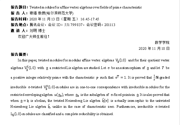 关于举行哈尔滨师范大学穆强教授学术报告会的通知