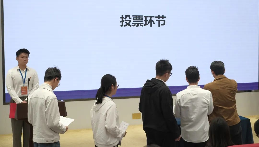 在总监票人和监票人的监督下,到会学生代表以无记名投票的方式,选举出3名主席团成员。根据大会选举办法,陈熠、孙玺乔、孙燚当选铭诚书院第二届学生会主席团成员。