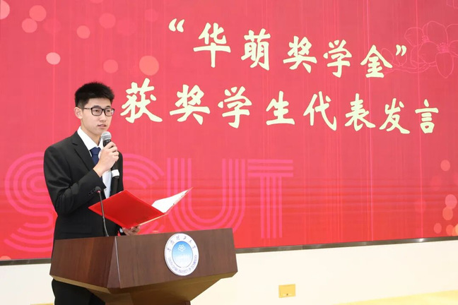 “华萌奖学金”获奖学生代表,铭诚书院、微电子学院2023级潘周璟轩同学则表示作为华工青年,他将继续潜精研思、刻苦钻研,以科技利刃劈开发展桎梏,让青春脉搏与民族复兴的宏伟节拍同频共振。