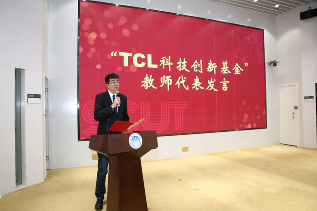 “TCL科技创新基金”入选项目教师代表,材料科学与工程学院李宁教授发言表示他将继续深度融入产学研合作,加速实验室成果向产业转化,助力粤港澳大湾区打造AI与材料创新高地,为民族显示产业注入科技动能。