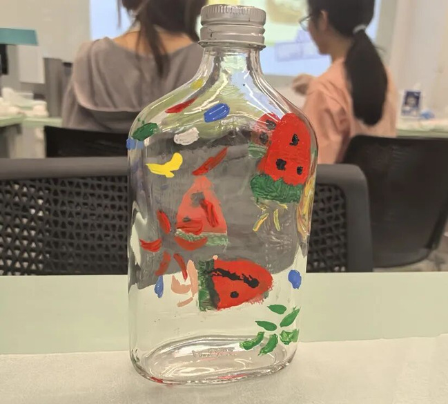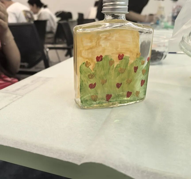 颜料在玻璃瓶上晕染的每一笔,都需要全神贯注,恰似在时光里精心书写自己的故事,留下专属的青春印记。
