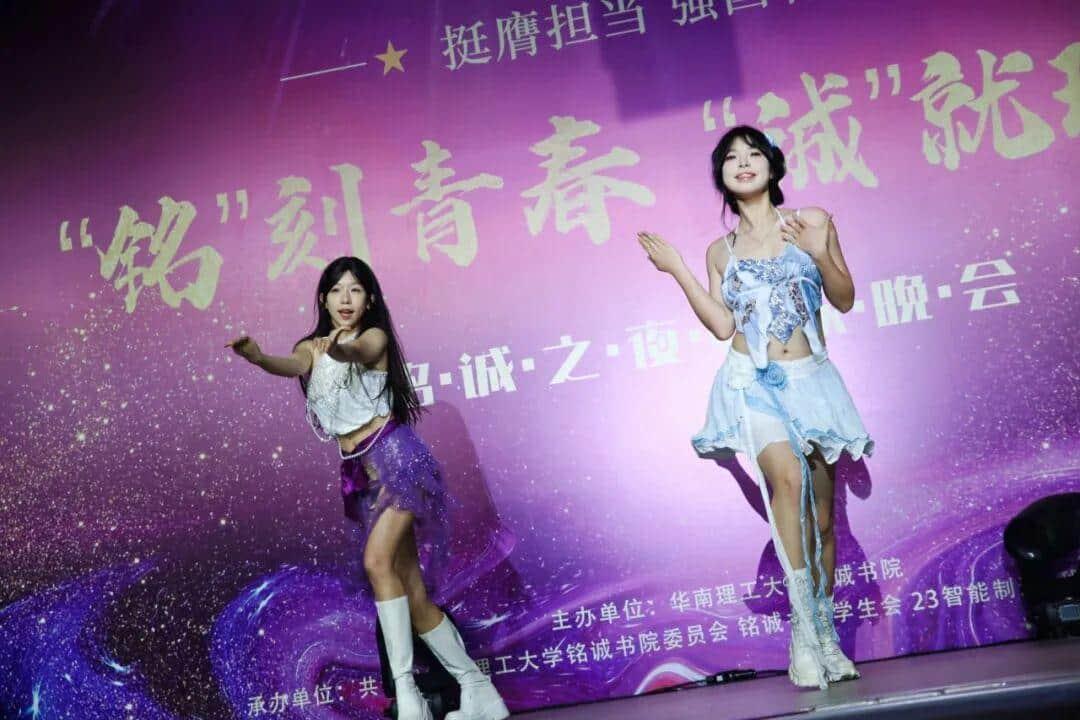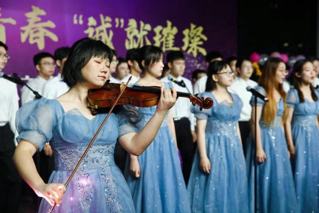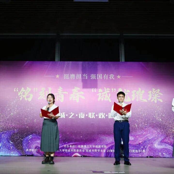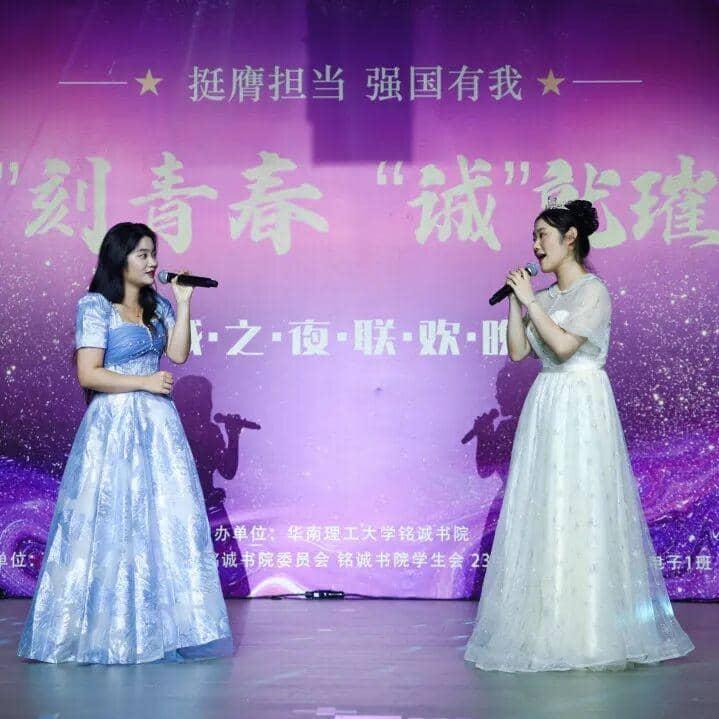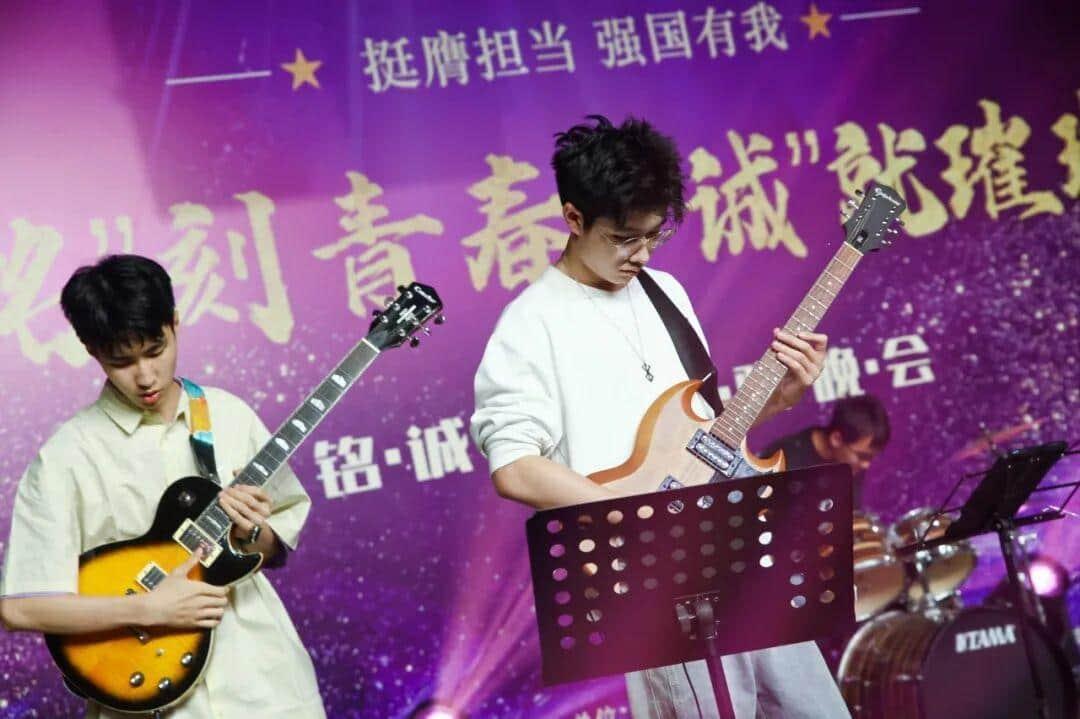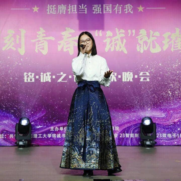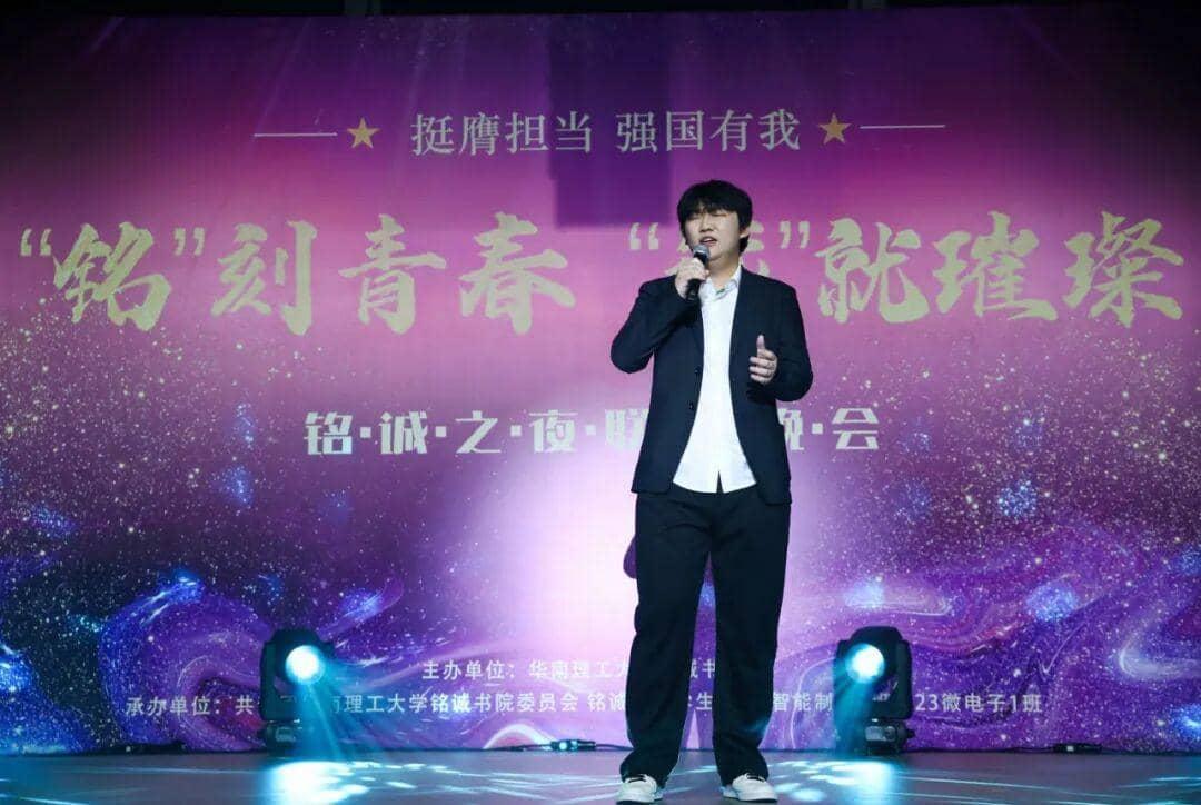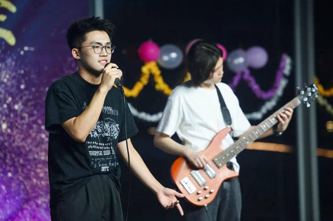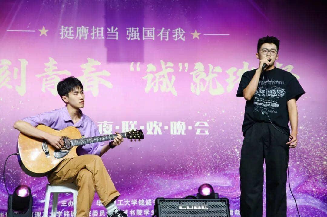 在“铭诚之夜”,我参与了乐队合奏和二人弹唱。作为乐队主唱,站在台上,我感受到的不仅是灯光与掌声,更有团队协作后的凝聚力与成就感。为了这次演出,我们排练了很多次,反复打磨细节,从音准到节奏,从情绪到舞台