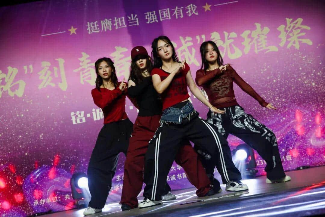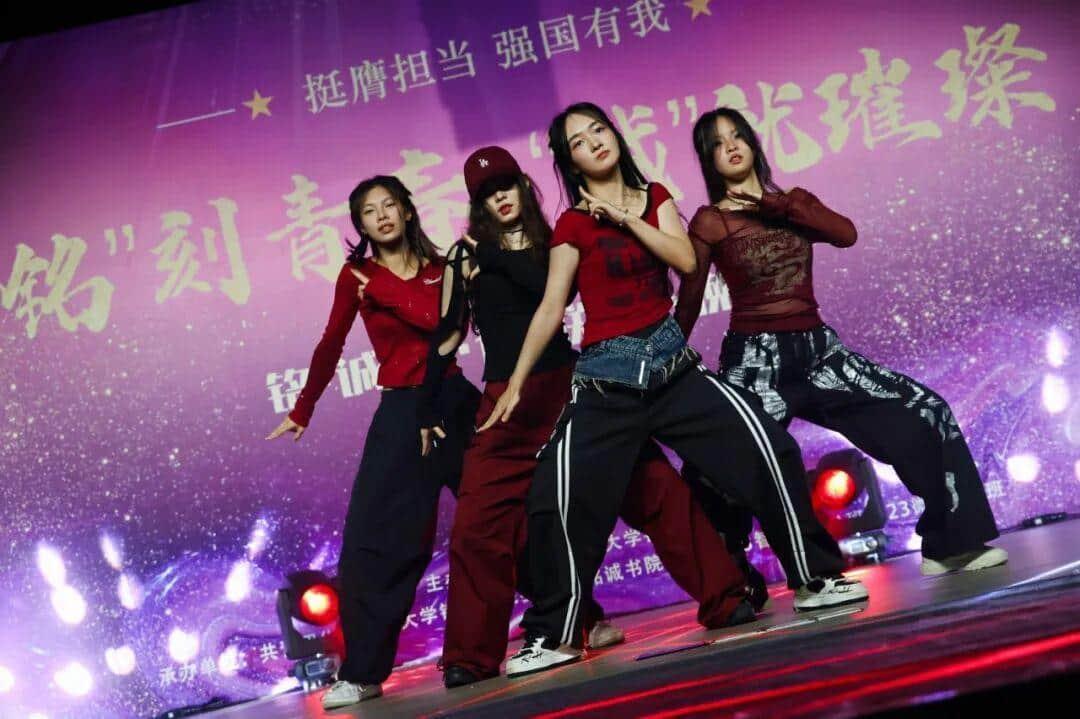 女孩们以潮流动感的舞步为画笔,用极具个性的肢体语言作颜料,在节奏的画布上肆意泼洒,展现当代学子的活力。