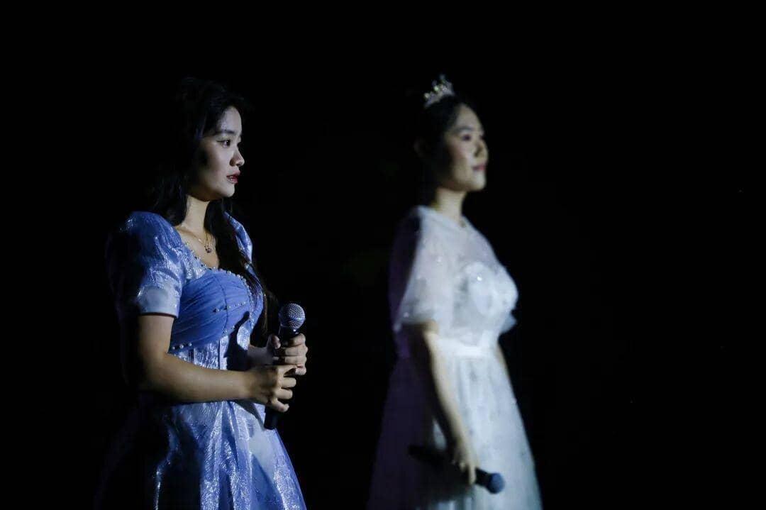 灯光聚集,卓嘉颖与李昀致的歌声宛如夜空中最温柔的星光,又似林间灵动的精灵,穿梭于旋律之间。