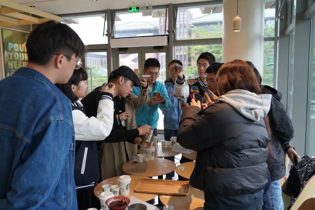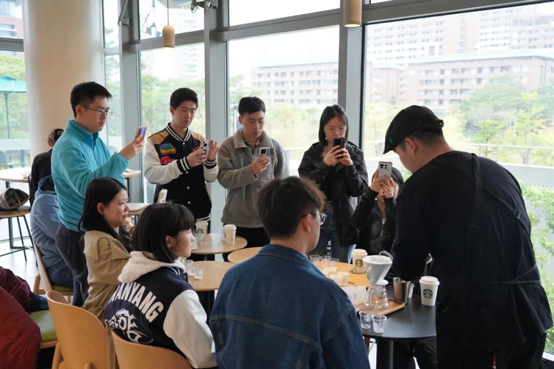 国际校区星巴克门店咖啡香气弥漫,一场咖啡体验课拉开帷幕。咖啡爱好者围坐在原木圆桌旁,在店长Micheal的带领下,通过趣味实验与品鉴,逐层揭开咖啡风味的神秘面纱,解锁咖啡品鉴的三大密码——香气、醇厚度、酸度。